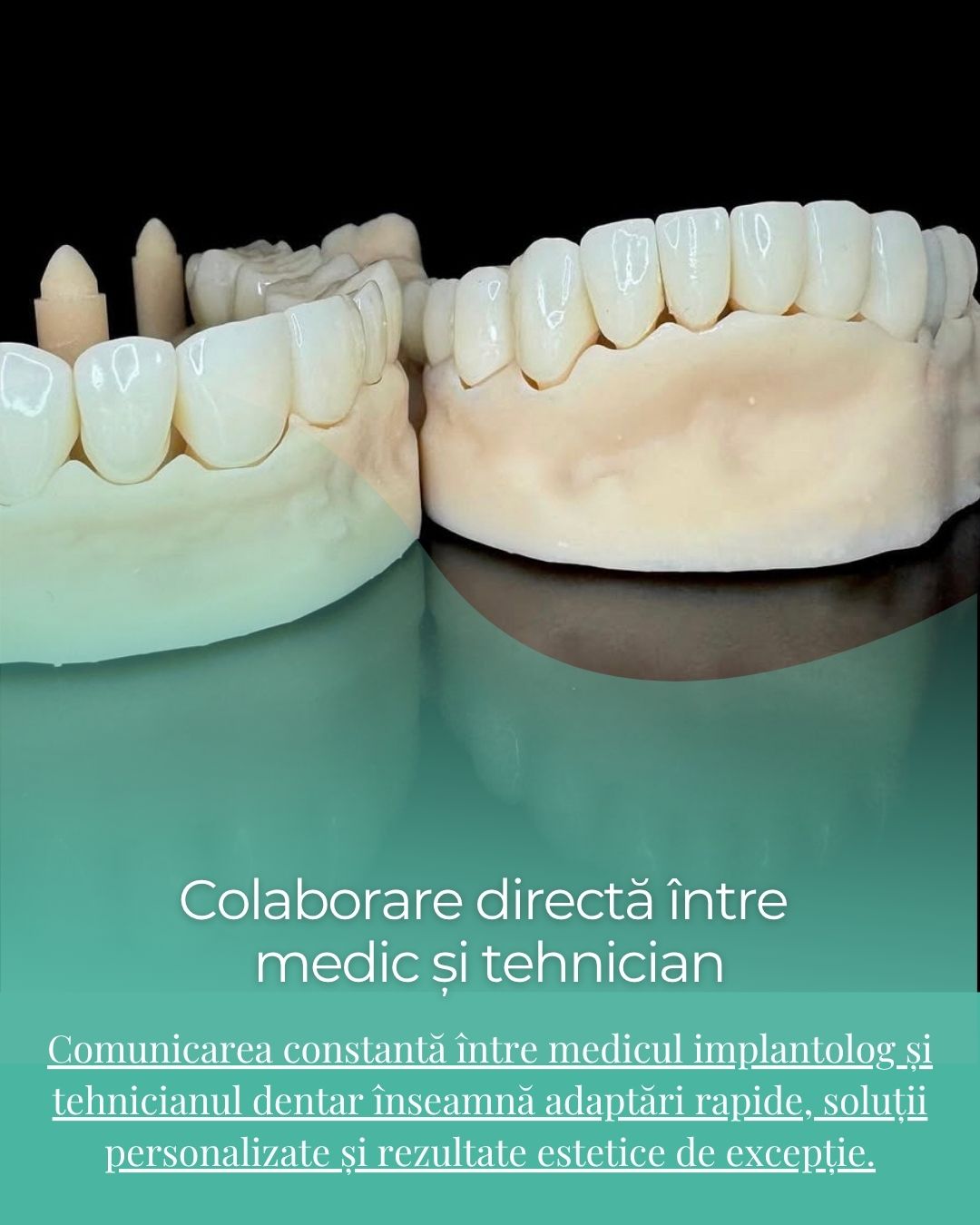 🔹 Comunicarea constantă între medicul implantolog și tehnicianul dentar înseamnă adaptări rapide, soluții personalizate și